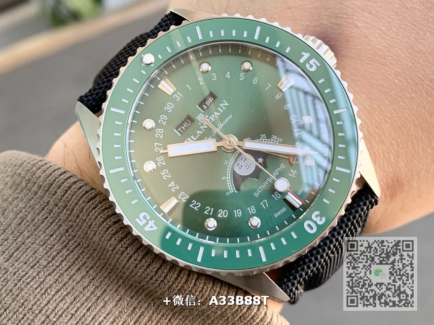 【品牌】宝珀【产品介绍】TW厂手表力作宝铂五十寻系列,5054-1110-B52A。压轴巨献,大三针夜光设计,直径43毫米,厚度13.3毫米!搭载6654.P自动机械机芯,具备星期显示,日期显示。月份显示,年份显示,月相显示,壳身轮廓分明,线条清晰决绝。优雅、律动之下隐藏着刚毅成熟的美。满足运动,商务,多功能性佩戴。定让君能依芯所向!TW诚意之作值得你拥有!【尺寸】43mmX13.3mm【表带】尼龙纤维表带,内侧牛皮【镜面】蓝宝石镜面【机芯】cal.6654机芯【防水】50米【配件】原装盒,说明书,质保卡,吊牌,香港机打发票【品质检测】保证所有手表实物拍摄,所见即所得 , 手表发货前都会有严格检查测试,确保您收到的手表无质量问题