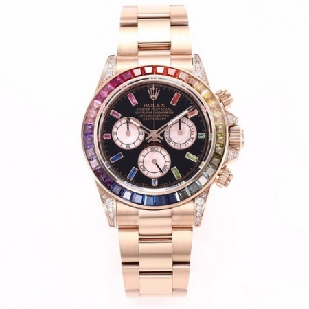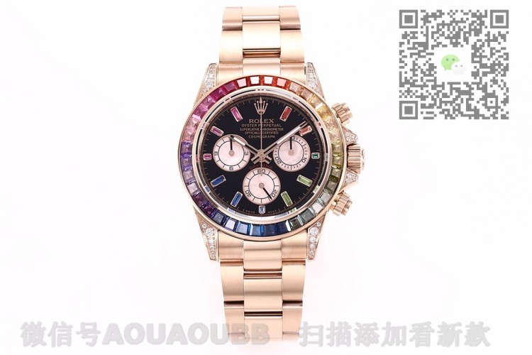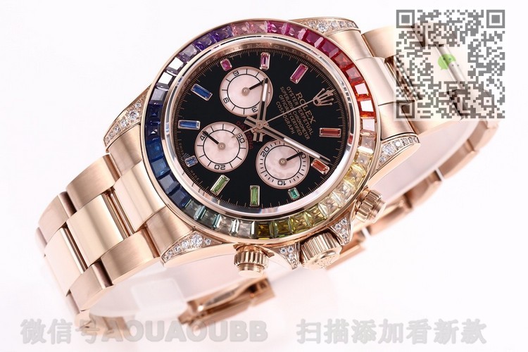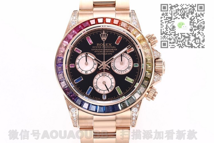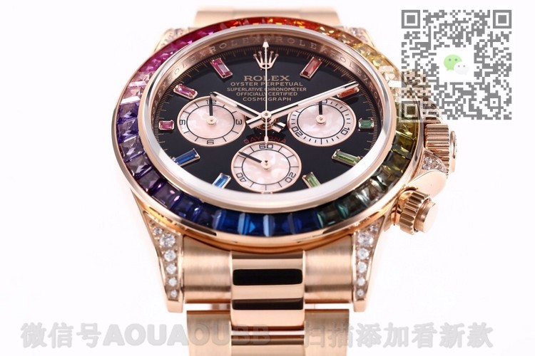 【产品介绍】全新迪通拿彩虹款。型号:116599RBOW-116598RBOW-116595RBOW.彩虹迪通拿一表难求!镶嵌根据原厂颜色渐变过渡最协调的36颗宝石进行优化处理,高度、角度一致,折射效果非常漂亮。字面每个计时盘为光线的不同而发生折射,色泽鲜艳亮丽,独一无二。搭载原装一致Cal.4130机械计时机芯,蓝宝石透彻效果镜面,Rolex专用生耳,钢实心链节蚝式易调节表带,抛光打磨精湛细腻。正品代购包装,款式型号分别对应,最高品质推荐。