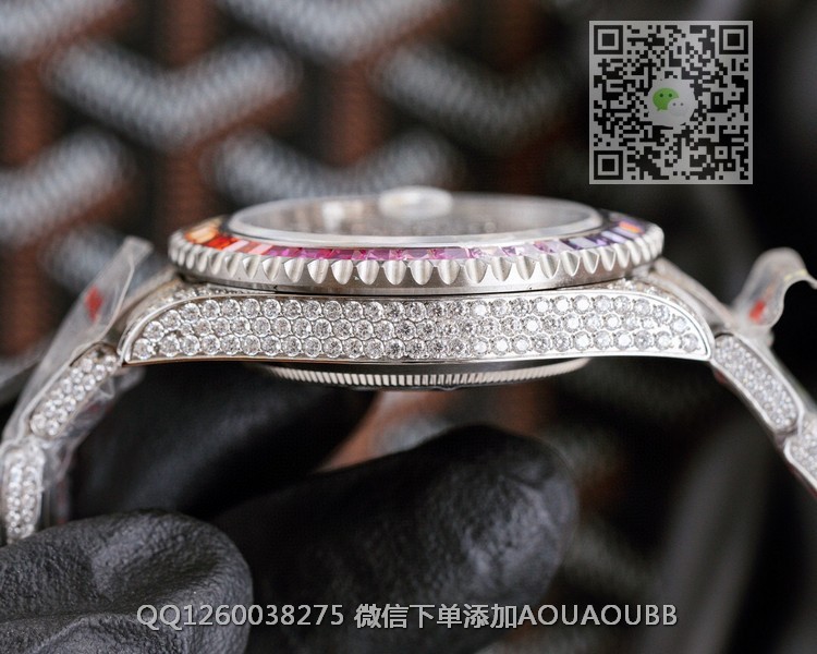 【品牌】劳力士【产品介绍】彩虹方钻日志满钻款!!41mm直径!采用复刻劳力士3135全自动机械机芯!劳力士奢华18k纳米技术!5组满钻原装表带!2300+颗AAA锆石精心打造!认准镶嵌工艺非市面上贴钻普通工艺!!全新搭配5组满钻钢带!41mm原装尺寸,蓝宝石防刮花玻璃镜面,18k真空电镀永不掉色,送礼最佳奢华推荐!【款式】男款【尺寸】直径41mm【表带】满钻精钢表带【镜面】蓝宝石镜面【机芯】复刻劳力士3135机芯【防水】100米防水【配件】原装盒,说明书,质保卡,吊牌,香港机打发票【品质检测】保证所有手表实物拍摄,所见即所得 , 手表发货前都会有严格检查测试,确保您收到的手表无质量问题