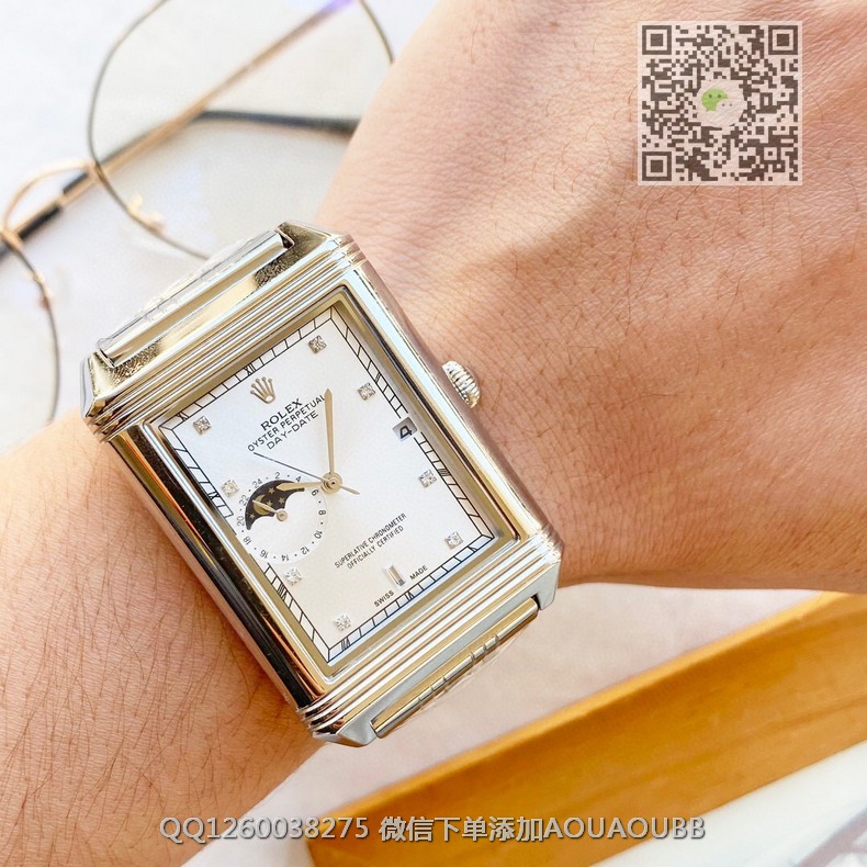 【品牌】劳力士【产品介绍】劳力士典藏系列男士方形全自动机械腕表,三针半搭载月相设计,3点位置日历显示 9点位置24小时月相显示,技艺精湛,独具匠心,尊贵大气,绅士风范【款式】男款【尺寸】34x44mm【表带】精钢表带【镜面】蓝宝石镜面【机芯】进口全自动机械机芯【防水】50米防水【配件】原装盒,说明书,质保卡,吊牌,香港机打发票【品质检测】保证所有手表实物拍摄,所见即所得 , 手表发货前都会有严格检查测试,确保您收到的手表无质量问题