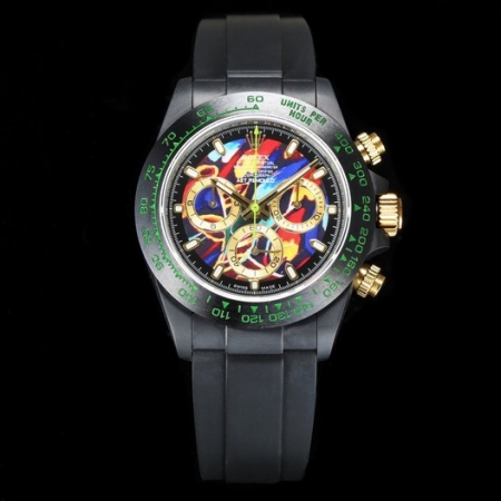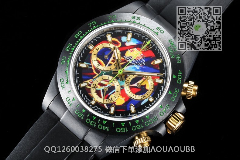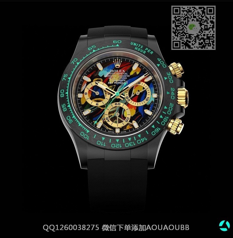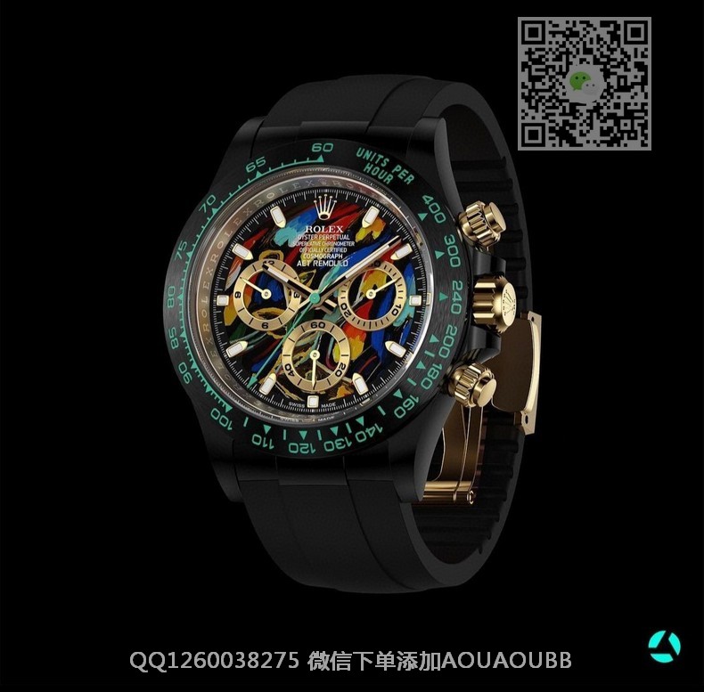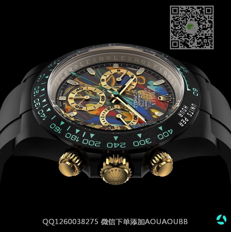 【品牌】劳力士【产品介绍】理查大帝劳力士TW FACTORY ROLEX劳力士最新到:最艺术的腕表AET x ROLEX x Picasso CrossoverCharles the Great毕加索官方授权(世界名画:理查大帝) AET改装劳力士迪通拿全球仅限量10枚黑陶瓷表壳,丰富的色彩与纯黑色的Daytona完美融合,弥足珍贵,值得收藏!官方售价¥387000!!AET宇宙计时迪通拿腕表不仅佩戴轻便,外表坚硬。且每一只腕表都拥有独一无二设计【表壳】腕表尺寸40X13.5吻合原装。实力铸造陶瓷劳力士的独特风采。市场独家做到,整个壳套,圈口包括底盖均采用进口陶瓷材料。细节之处更是经过手工倒角抛光所制。质感非凡。【表带】表带采用进口氟橡胶材料,永不硬化,完美贴手佩戴。【机芯】采用精准而成熟的7750机芯,完美实现正品强大功能!!!【镜面】蓝宝石镜面【防水】100米防水【配件】原装盒,说明书,质保卡,吊牌,香港机打发票【品质检测】保证所有手表实物拍摄,所见即所得 , 手表发货前都会有严格检查测试,确保您收到的手表无质量问题