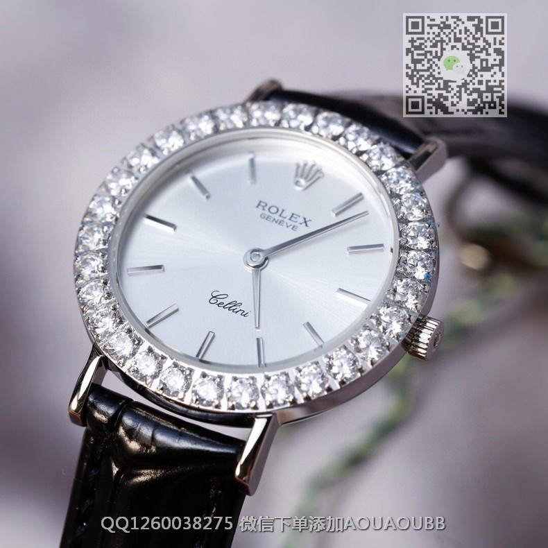 【品牌】劳力士【产品介绍】劳力士ROLEX 1970’s VINTAGE 古董表️善于将复古元素和时下流行巧妙融合,一场又一场周而复始的循环,很多过去流行的事物会在沉淀一段时间后,重回时尚浪尖经典小圆形表盘进行了镶钻处理,瑞士石英机芯,全钢材质与白金电镀,整体质感和气质都变了,精致感upup!进口小牛皮,搭配小巧壳形,上手效果完美!实物拍摄品质如一!【款式】女款【尺寸】直径30mm【表带】意大利牛皮表带【镜面】蓝宝石镜面【机芯】瑞士原装石英机芯【防水】50米防水【配件】原装盒,说明书,质保卡,吊牌,香港机打发票【品质检测】保证所有手表实物拍摄,所见即所得 , 手表发货前都会有严格检查测试,确保您收到的手表无质量问题